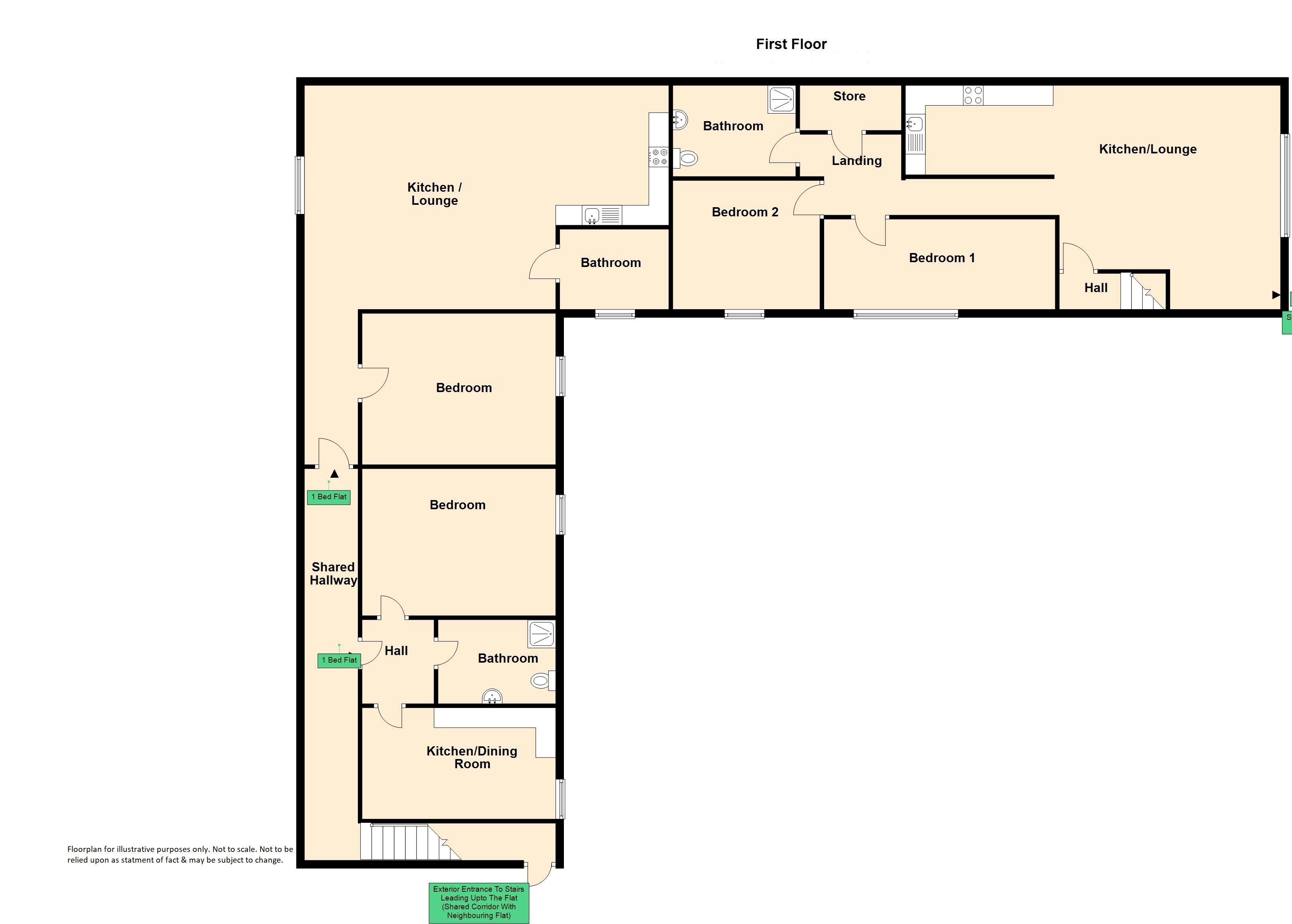 One-bedroom self-contained flat with an open plan kitchen lounge, bathroom and well-proportioned bedroom and accessed via the side of the property.